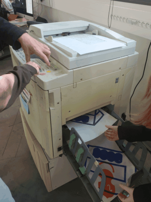 (2) La risographie est une technique similaire au copieur sauf qu’elle fonctionne avec des tambours d’encre sur lesquels viennent se déposer un pochoir appelé master perforé par une petite tête laser.