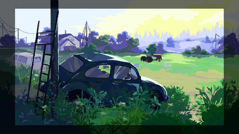 L’objectif de la semaine était de créer un décor pour une production animée mixant une référence cinématographique avec une référence graphique choisies par les étudiant·e·s.