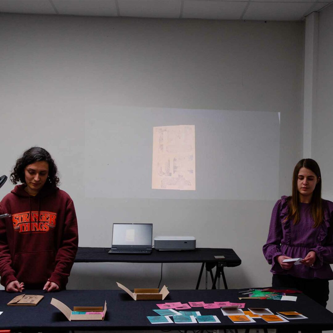 À l’occasion de ce travail, les étudiant·es ont exposé, présenté, et joués leurs productions au sein de l’école.